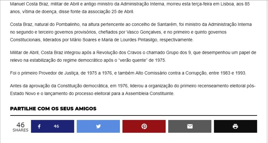 Militar de formação, esteve ligado ao MFA de cujo programa foi um dos seus colaboradores. Homem do 25 de Abril, o Coronel Costa Braz integrou vários Governos Provisórios e Constitucionais.Figura respeitável nos mais diversos quadrantes sócio-políticos, exerceu ainda os prestigiados cargos de Provedor de Justiça e de Alto Comissário contra a Corrupção.